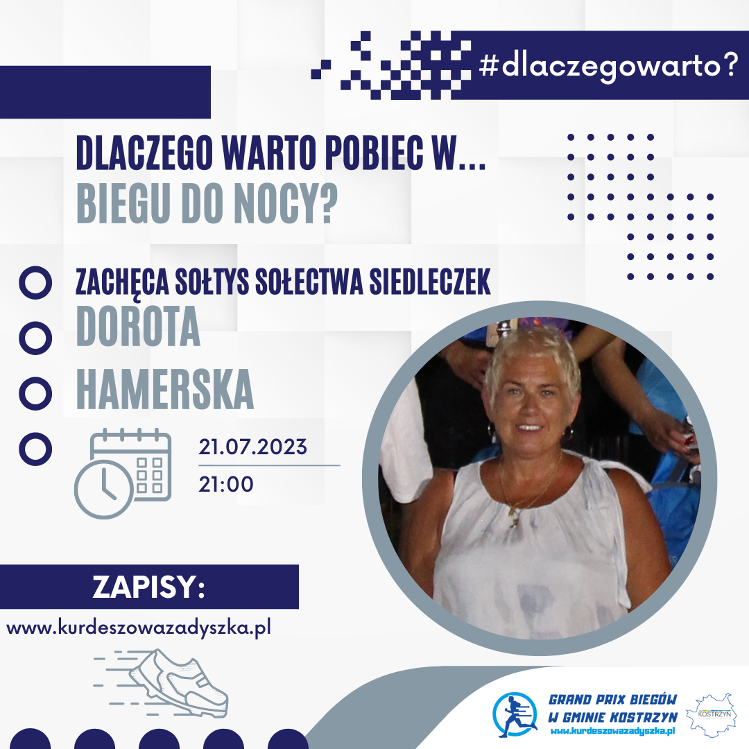Cykl #dlaczegowarto? – III Bieg do Nocy 🏃♀️🌙🏃🌚 Dziś czwarta odsłona cyklu #dlaczegowarto? w którym przedstawiamy odpowiedź na pytanie dlaczego warto wziąć udział w jednym z biegów Grand Prix Biegów Gminy Kostrzyn. 🏃🏃♀️ #4️⃣ O III Biegu do Nocy w Siedleczku mówi Organizator – Dorota Hamerska, Sołtys Sołectwa Siedleczek „Bieg do Nocy w Siedleczku świetnie przyjął się … Czytaj dalej Cykl #dlaczegowarto? – III Bieg do Nocy 🏃♀️🌙🏃🌚